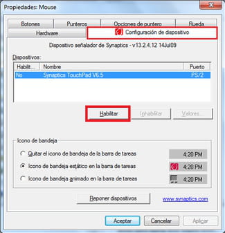 touchpad se desactivará automáticamente cuando el sistema detecte otro dispositivo apuntador. Para que esto sea posible, ve a
