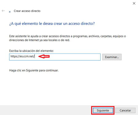 Escribe un nombre para el acceso directo (por ejemplo, CCM) y haz clic en