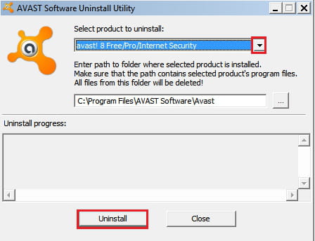 - Selecciona la versión de avast! que deseas desinstalar
