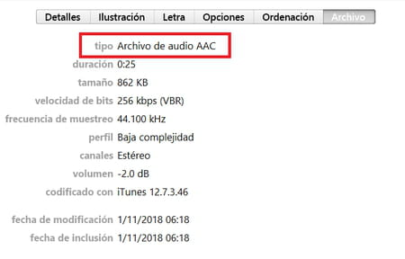 AAC que ahora aparece en la biblioteca de iTunes. Tras esto, cambia la extensión del archivo de