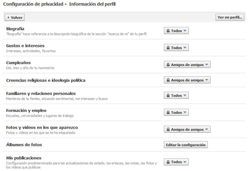 El problema con esta revolución de los parámetros de privacidad es que los usuarios no han leído esta página de alerta, y Facebook ha dejado marcada una casilla diciendo algo como "Todos pueden acceder a mi muro, a mis fotos, etc..." Seguramente te habrás podido dar cuenta de esto al visitar el perfil de algún usuario de Facebook que no está dentro de tus amigos, y poder acceder a su muro, a sus fotos, etc.