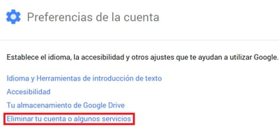 Eliminar tu cuenta o algunos sevicios:
