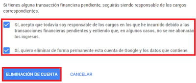 Eliminación de cuenta:
