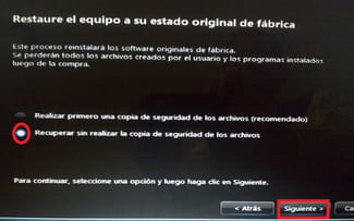 Recuperar sin realizar la copia de seguridad de los archivos y haz clic en