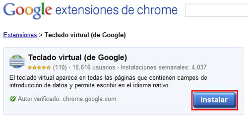 - Para tener el teclado virtual disponible en todas las páginas web y no solamente en los servicios de Google, puedes instalar la extensión Herramientas de introducción de texto de Google para el navegador Chrome.