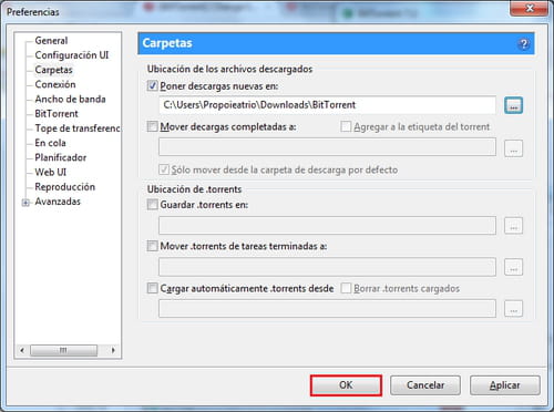 Cómo cambiar la carpeta de descargas en BitTorrent