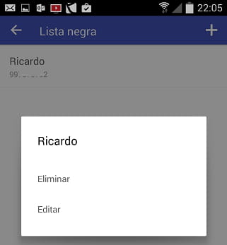 Lista negra. Pulsa el botón