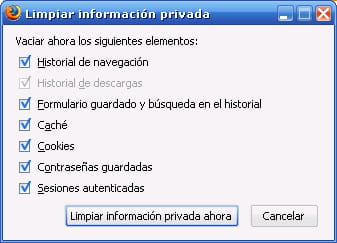Limpiar información privada ahora: