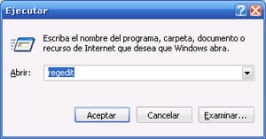 regedit y haz clic en