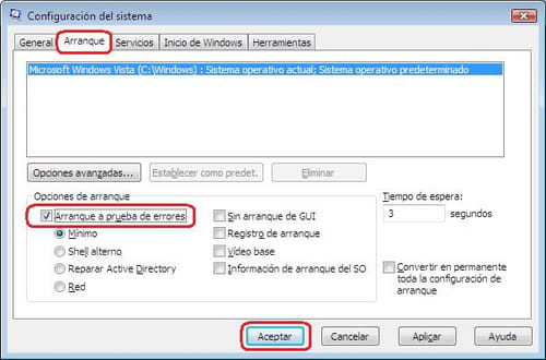 Arranque a prueba de errores, deberás marcar la casilla