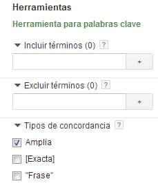 - En la columna de la izquierda: pensar en incluir o excluir palabras pertinentes o no pertinentes