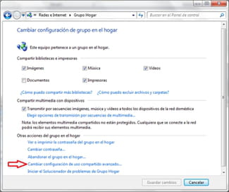 Cambiar configuración de uso compartido avanzado: