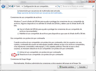 red Windows pueda acceder, deberás desactivar el uso compartido por protección con contraseña.