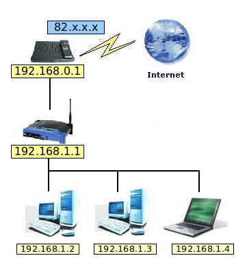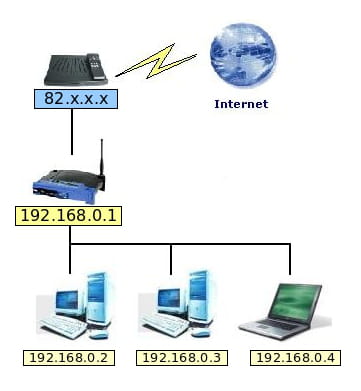 router con IP 192.168.0.1, asignará a los otros equipos de la red direcciones que van del 192.168.0.2 al 192.168.0.254.