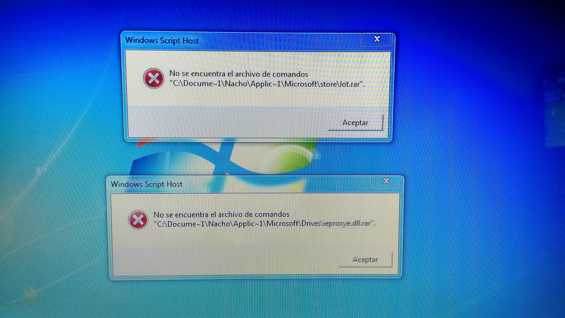 Carteles error al inicio.